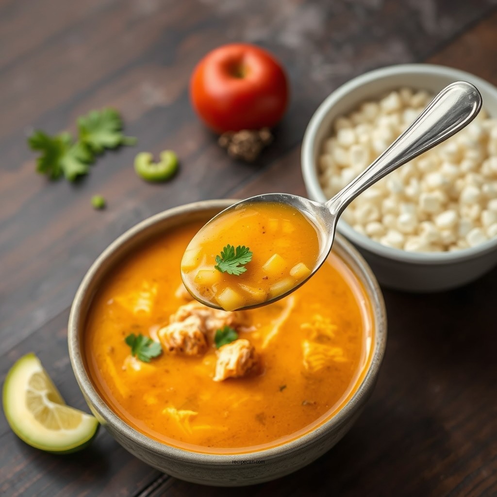 Once your soup base is ready, it’s time to combine all the ingredients. Stir in the cooked chicken, ensuring it is evenly distributed throughout the soup. Allow the mixture to simmer for about 10 to 15 minutes, which will help the flavors meld beautifully. This is also the time to taste and adjust the seasoning. You may find it beneficial to add more salt, cumin, or chili powder to achieve your desired flavor profile.