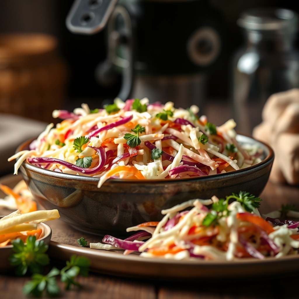 In conclusion, with this simple coleslaw recipe and dressing, you can impress your family and friends at your next meal. Don’t hesitate to experiment with flavors and textures, and be sure to share your delicious results! Whether you’re serving it at a barbecue or as a side dish for a family dinner, coleslaw is sure to be a crowd-pleaser. Enjoy your culinary adventure!