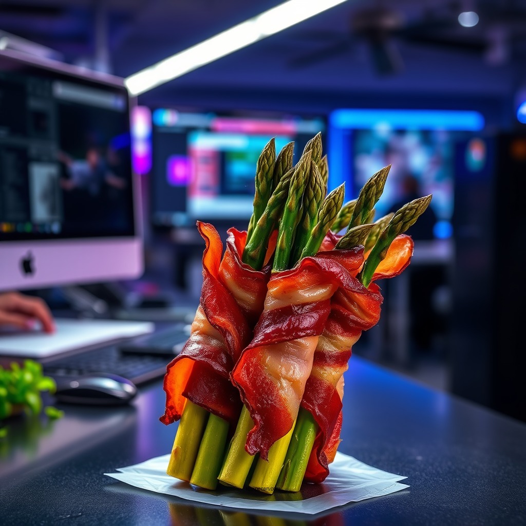 Why is bacon a popular choice for wrapping around asparagus?