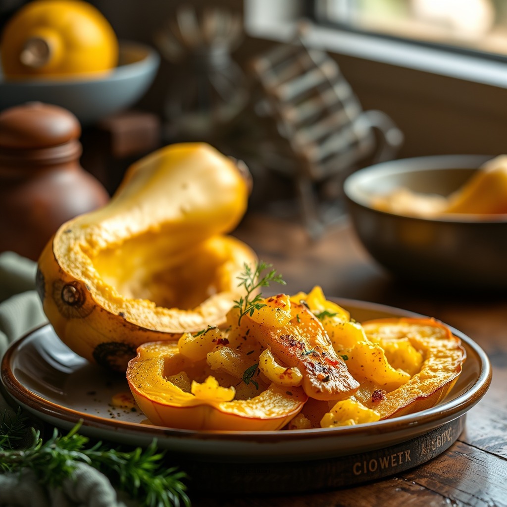 Spread the mixture evenly on a baking sheet and roast in the oven at 425°F (220°C) for about 20 minutes. The high temperature caramelizes the squash, bringing out its natural sweetness while the garlic and herbs infuse the dish with robust flavors. This recipe pairs excellently with fish or chicken, providing a fragrant side that complements a variety of main courses.