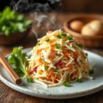 Shredding: Use a sharp knife or a mandoline slicer to create thin strips of cabbage and vegetables. Thin strips not only look elegant but also ensure that each bite has a balanced mix of flavors and textures.