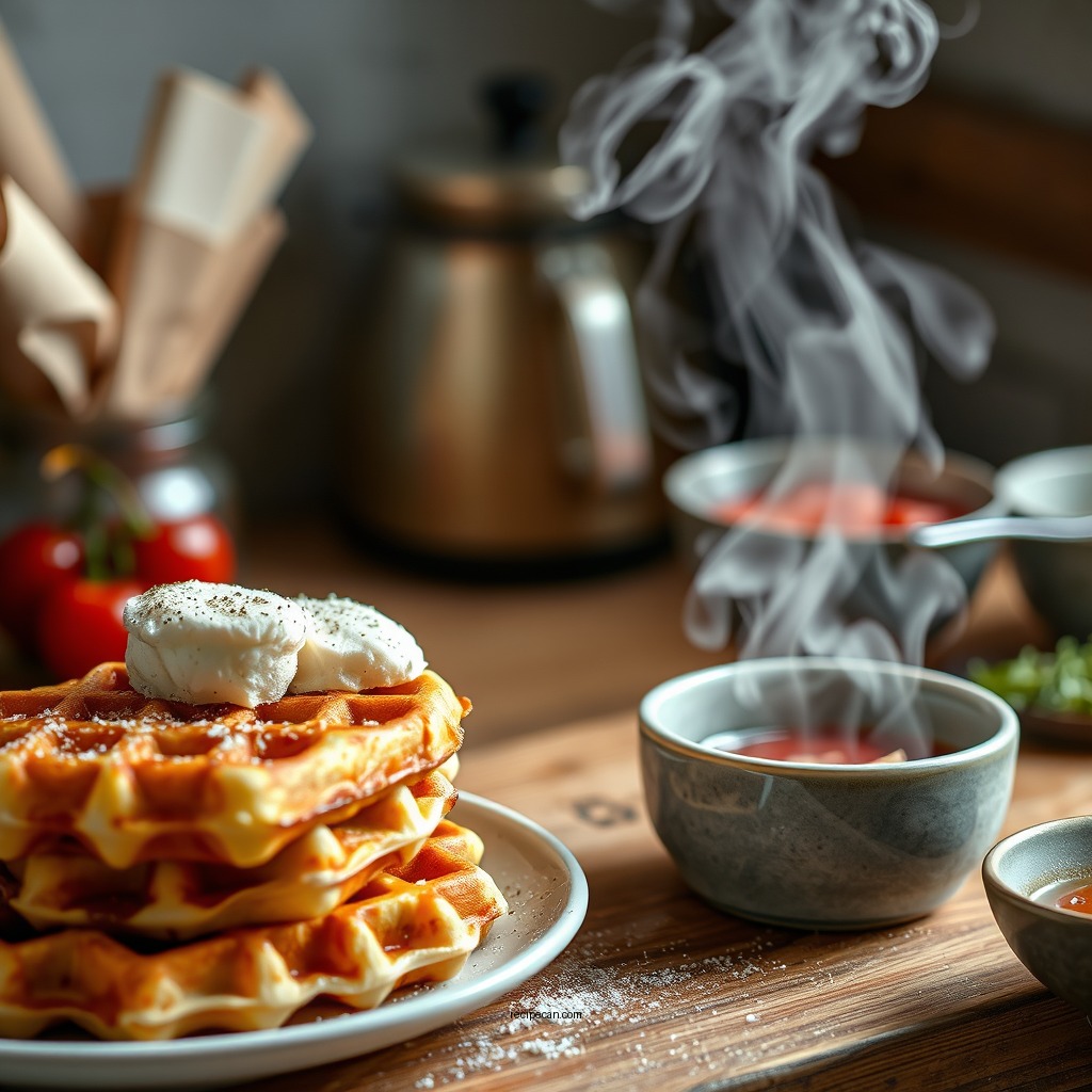 3. Savory Pairings: For a brunch spread, serve your waffles alongside savory options like fried or poached eggs, crispy bacon, or a side of sautéed greens. This combination creates a delightful contrast between sweet and savory flavors.