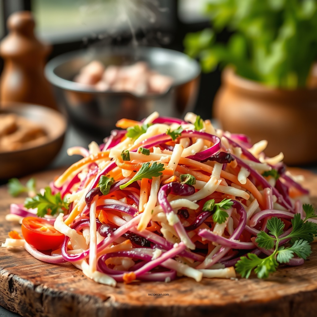 – Fruits: For a refreshing twist, consider adding diced apples or raisins. These ingredients introduce a natural sweetness that complements the savory elements of the coleslaw.