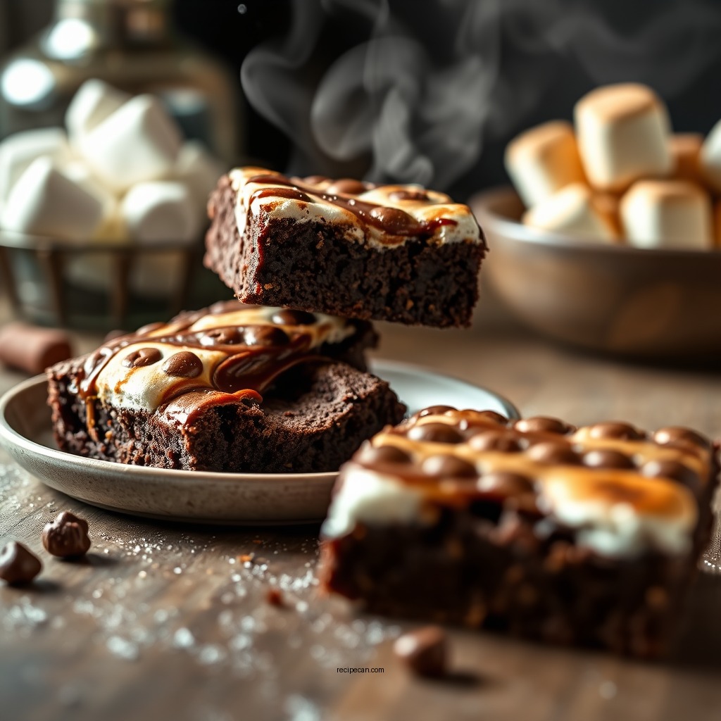 To make s’mores brownies from scratch, start by preparing the brownie batter using melted butter, cocoa powder, sugar, eggs, and flour. Pour half of the batter into a greased baking dish, sprinkle graham cracker crumbs and chocolate chips, then layer with mini marshmallows before topping with the remaining brownie batter. Bake at 350°F for 30-35 minutes until set, then broil briefly to toast the marshmallows for that perfect s’mores finish.