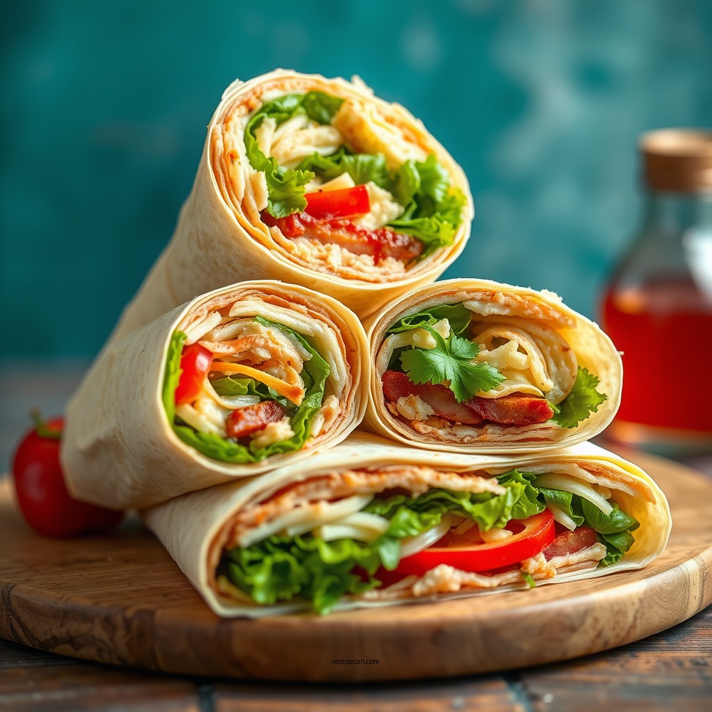 To enhance the wrap, you might add freshly grated Parmesan cheese and croutons for crunch. This wrap is perfect for on-the-go lunches, as it holds up well and can be eaten without utensils. Additionally, it’s a great way to incorporate lean protein and greens into your diet, making it a smart choice for health-conscious individuals.