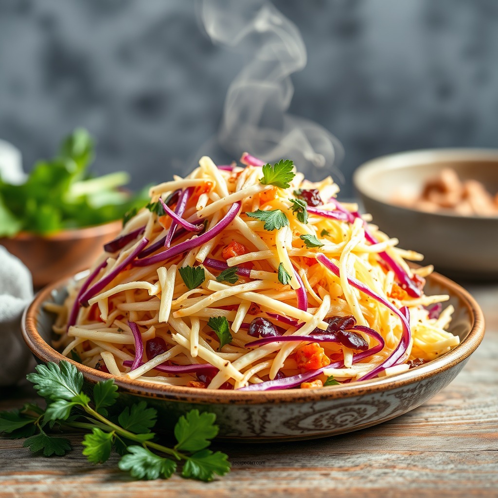 – Shred the cabbage: For the best texture, aim for thin, even slices of cabbage. This not only enhances the crunch but also allows the dressing to coat the vegetables more evenly. A mandoline slicer can be particularly useful for achieving uniform slices.