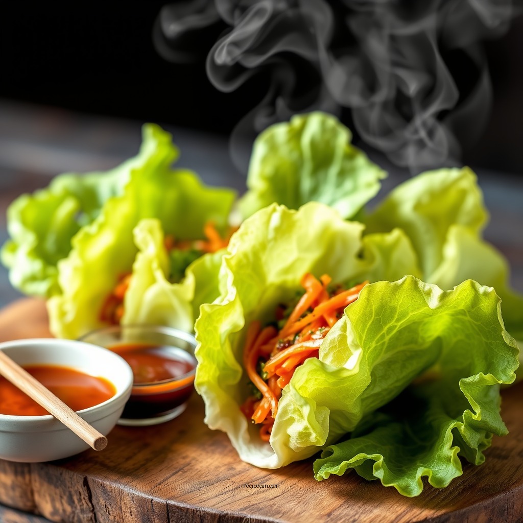 For the filling, use ground beef or chicken marinated in gochujang, soy sauce, garlic, and sesame oil. This combination results in a rich, savory filling that pairs perfectly with fresh vegetables. Serve with crisp cucumber sticks, shredded carrots, and a sprinkle of sesame seeds for added crunch. The freshness of the lettuce acts as a perfect vessel to hold the flavorful filling, making each bite a burst of flavor.