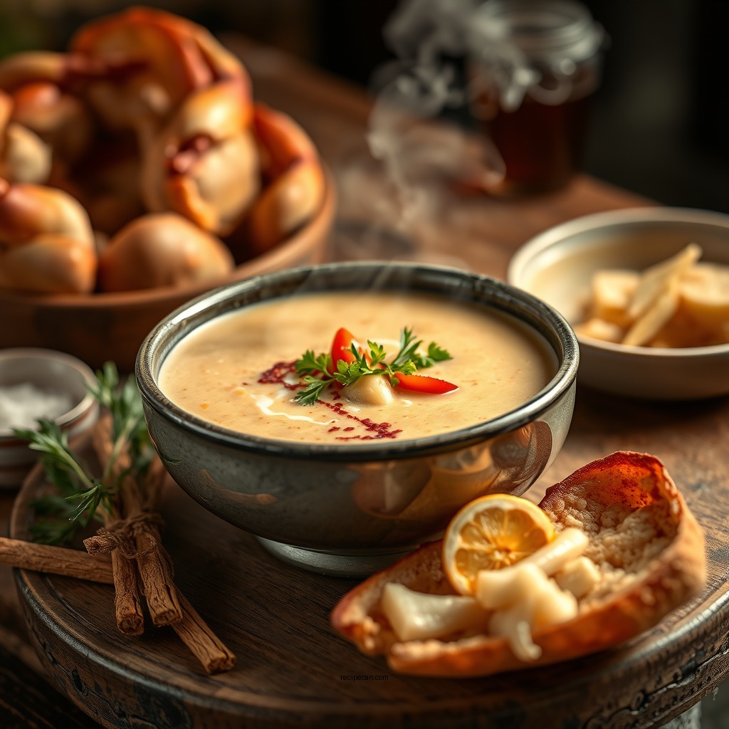Pair the soup with crusty bread for dipping or a light salad to balance the richness of the dish. For a complete dining experience, consider serving a glass of chilled white wine, such as a Sauvignon Blanc, which complements the seafood beautifully.
