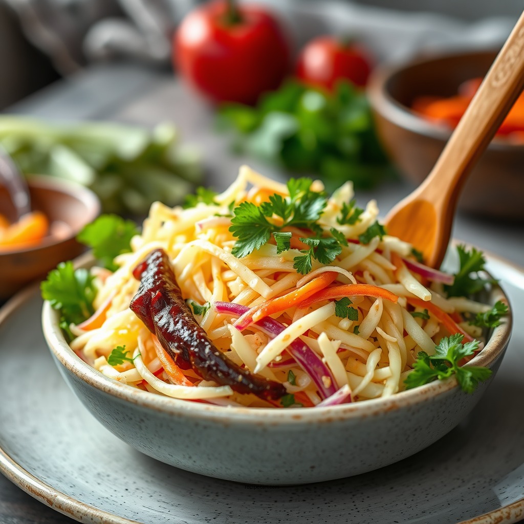 Garnish for Presentation: When serving, consider garnishing the coleslaw with additional herbs or a sprinkle of sesame seeds. This not only enhances the visual appeal but also adds an extra layer of flavor.