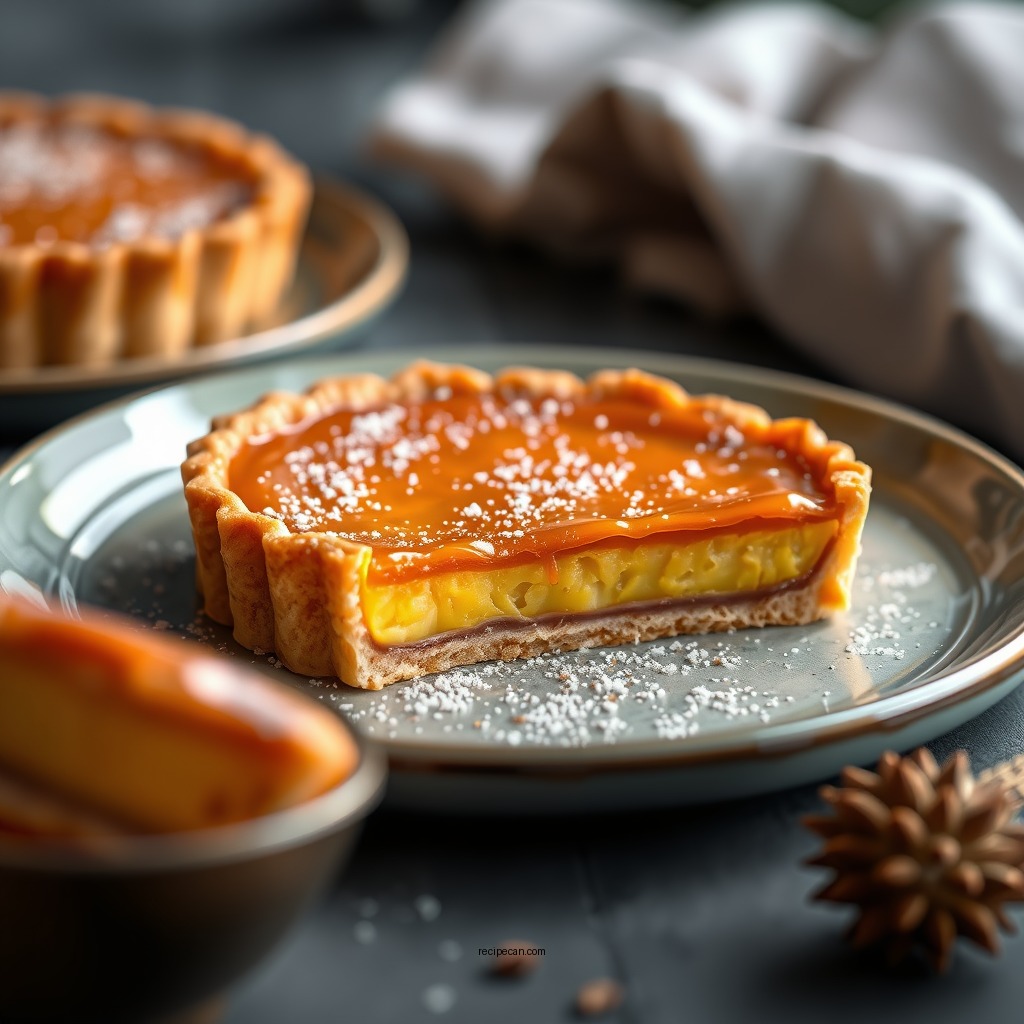 Serve the tart warm or at room temperature, garnished with fresh berries or a dusting of icing sugar. A drizzle of caramel sauce or a sprinkle of crushed nuts can also elevate the visual appeal and flavor profile.