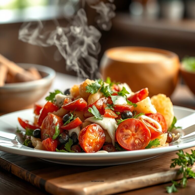 Grab fresh potatoes, carrots, peas, dill pickles, and a small onion, then chop into uniform bites. In a bowl, toss veggies with just enough mayonnaise to bind—aim for creamy, not heavy. Season with salt, pepper, a squeeze of lemon or a dab of mustard, and chill briefly to meld flavors. This versatile salad works as a side or light main. Want tips to tailor textures and swaps? Keep going and you’ll discover more tricks.